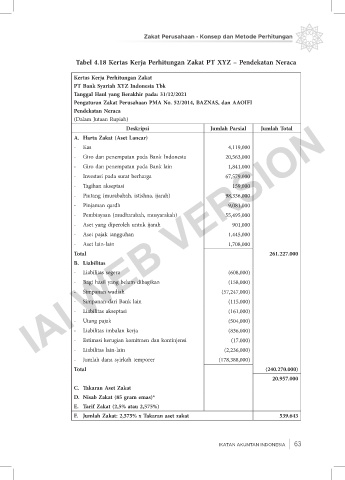 Tabel 4.18 Kertas Kerja Perhitungan Zakat PT XYZ – Pendekatan Neraca