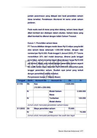 Kasus 1: Penerbitan saham biasa