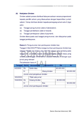 Kasus 4: Pengumuman dan pembayaran dividen kas