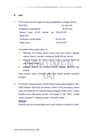 1. PT Pelangi memiliki bagian ekuitas yang disajikan sebagai berikut: