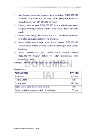 Hitunglah DPP dari masing-masing aset dan liabilitas tersebut.