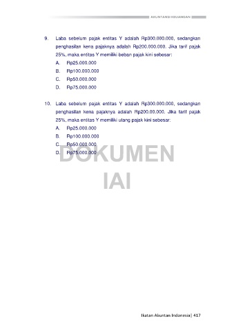 9. Laba sebelum pajak entitas Y adalah Rp300.000.000, sedangkan