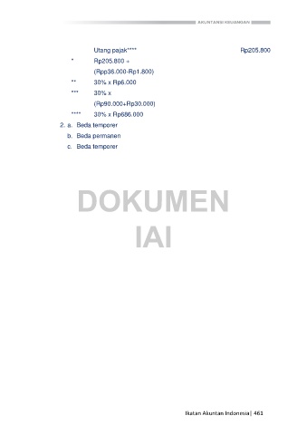 Utang pajak**** Rp205.800 * Rp205.800 + (Rpp36.000-Rp1.800) ** 30% x Rp6.000 *** 30% x (Rp90.000+Rp30.000) **** 30% x Rp686.000 2. a. Beda temporer b. Beda permanen c. Beda temporer DOKUMEN IAI Ikatan Akuntan Indonesia| 461