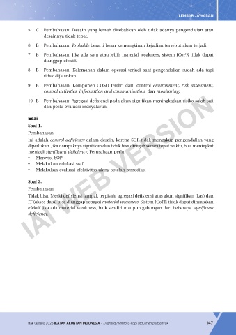 7. B Pembahasan: Jika ada satu atau lebih material weakness, sistem ICoFR tidak dapat