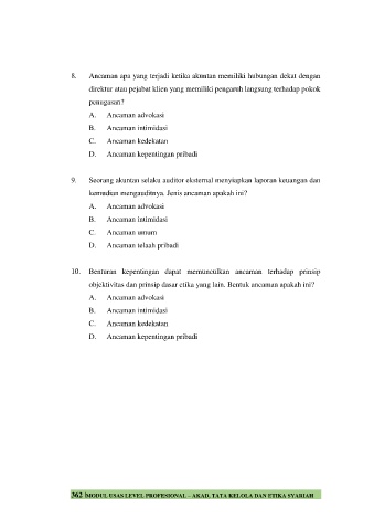 8. Ancaman apa yang terjadi ketika akuntan memiliki hubungan dekat dengan